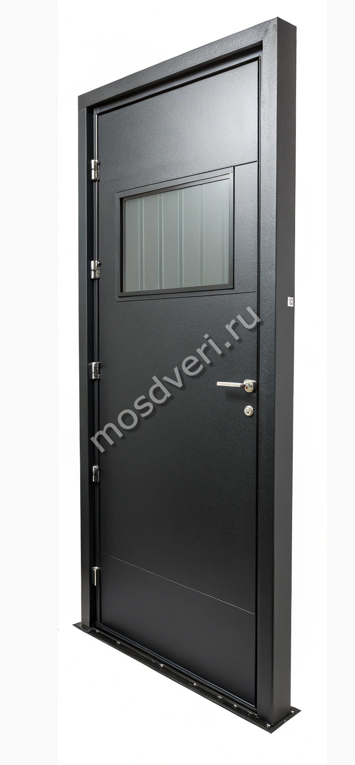 Входная дверь черная бронированная с окном ЧДД-018 в Саранске