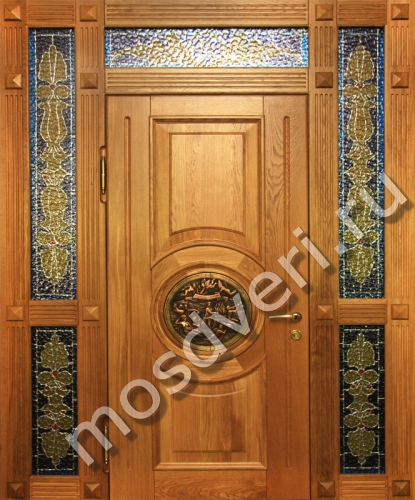 Парадная трехстворчатая дверь с витражом в Саранске