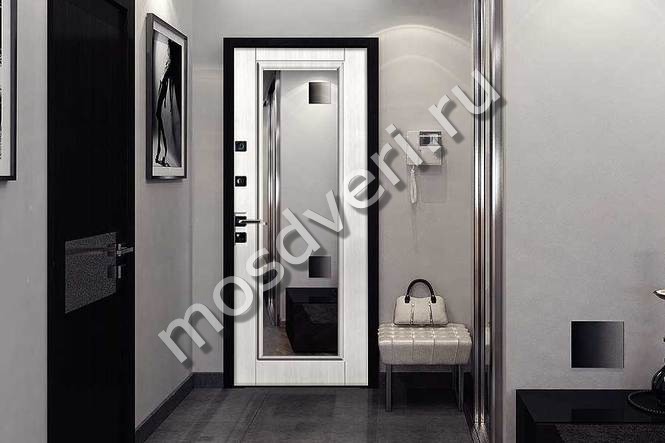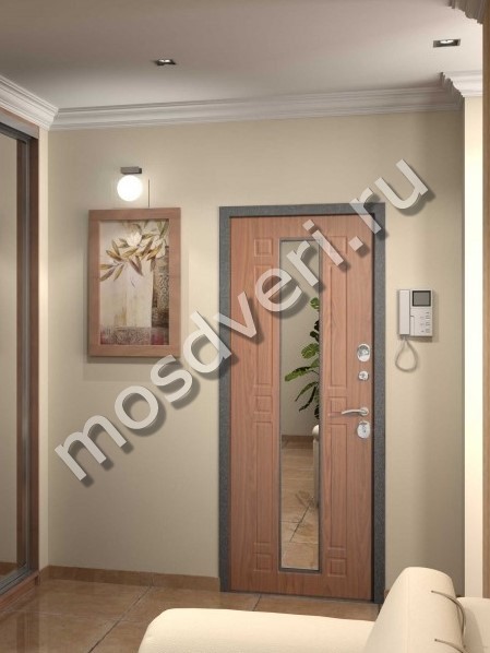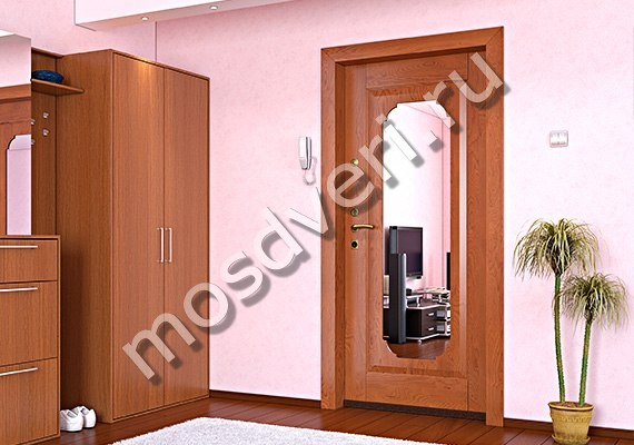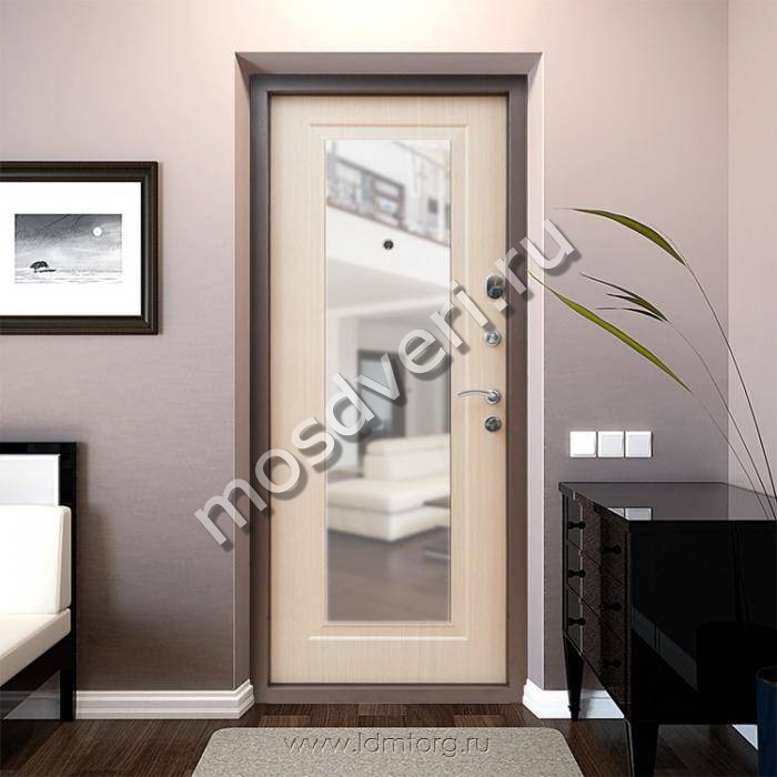 Квартирная входная металлическая дверь с зеркалом и шумоизоляцией МДФ+порошок