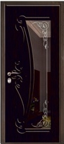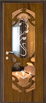Коттеджная входная дверь МДФ с зеркалом и натуральным шпоном с ковкой и стеклом