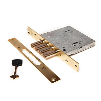 ответная планка, накладки, набор из пяти сувальдных ключей.