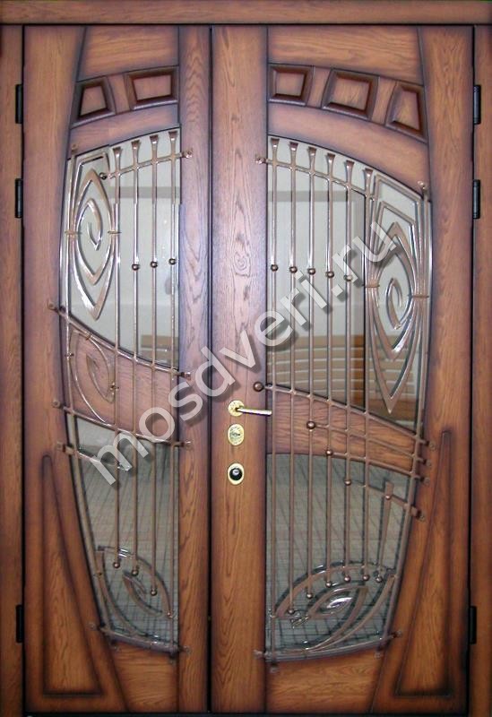 Темно-коричневая двустворчатая дверь со стеклом — совмещает стильный внешний вид и максимальную защиту.