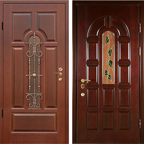 Входная парадная дверь с ковкой и витражом — совмещает эстетичность и превосходные защитные характеристики.