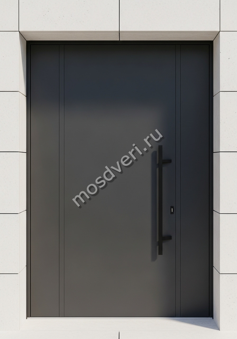 Входная дверь широкая в частный дом серая — совмещает современный дизайн и максимальную защиту.
