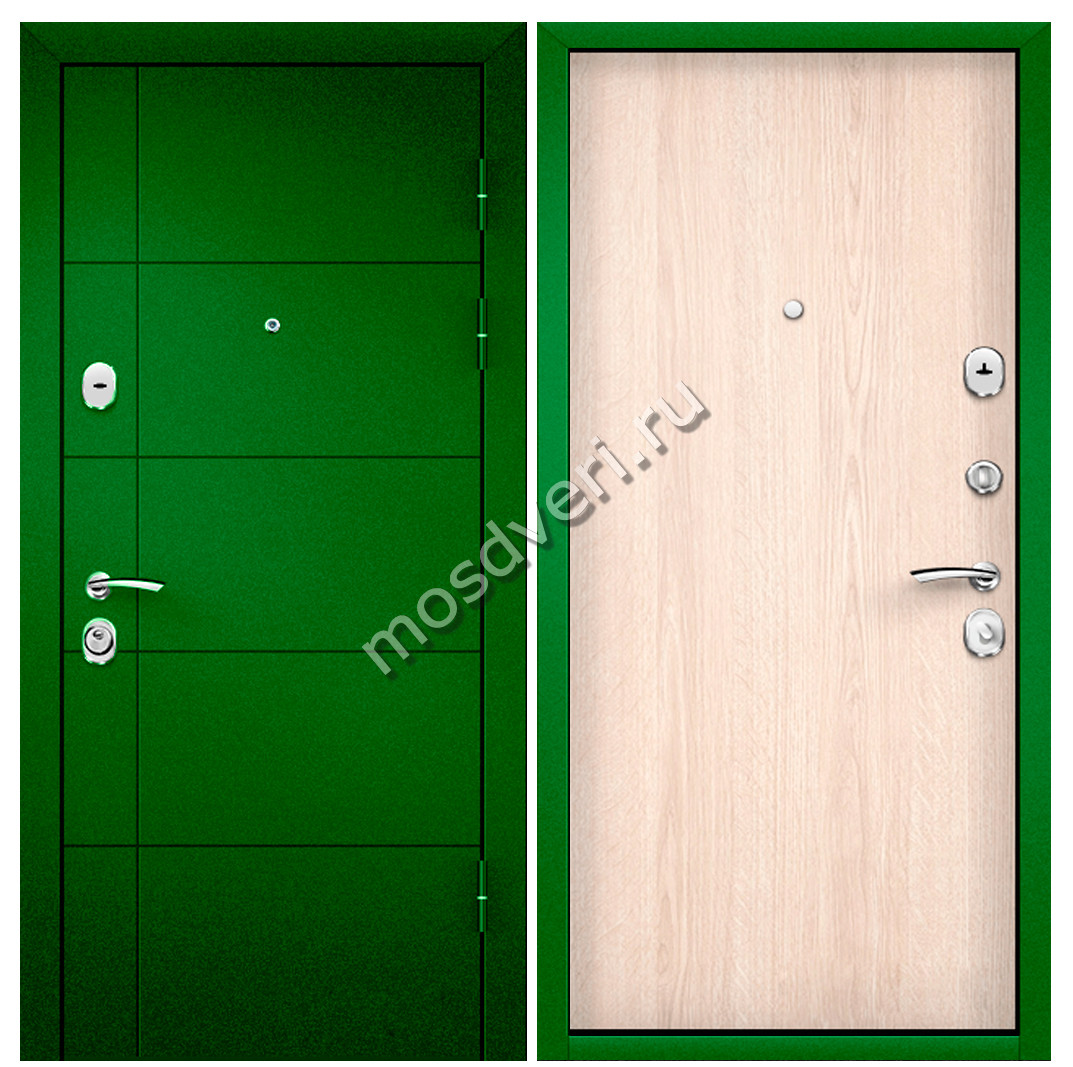 Зеленая входная дверь в квартиру ZVD-09 — купите сегодня! Напишите менеджеру, и узнайте точную цену в течение 15 минут. Выезд специалиста — в удобное для вас время!